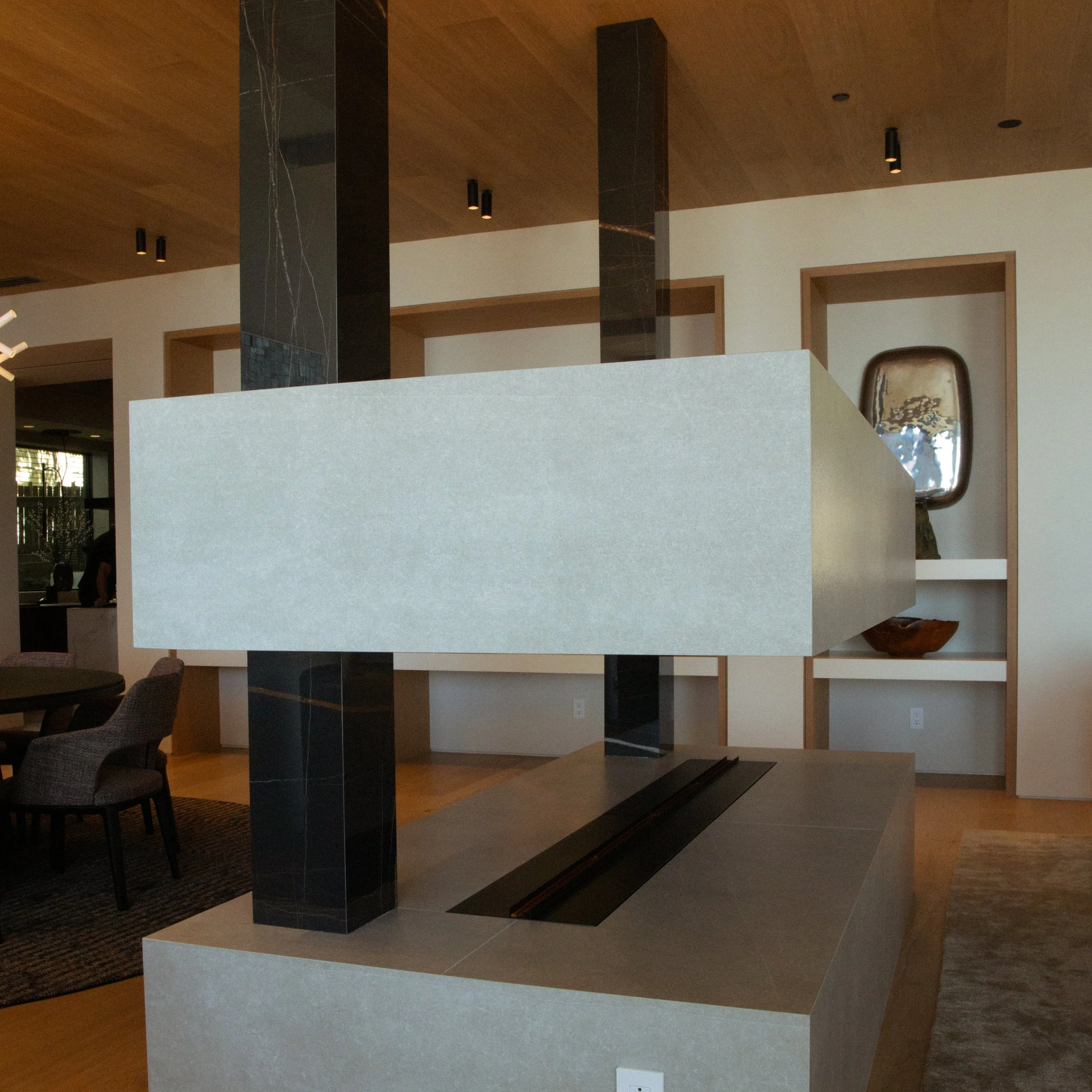 Installed tile on countertops, wall, floor, shower walls, bench, and shower floor. Window and storage cut outs.